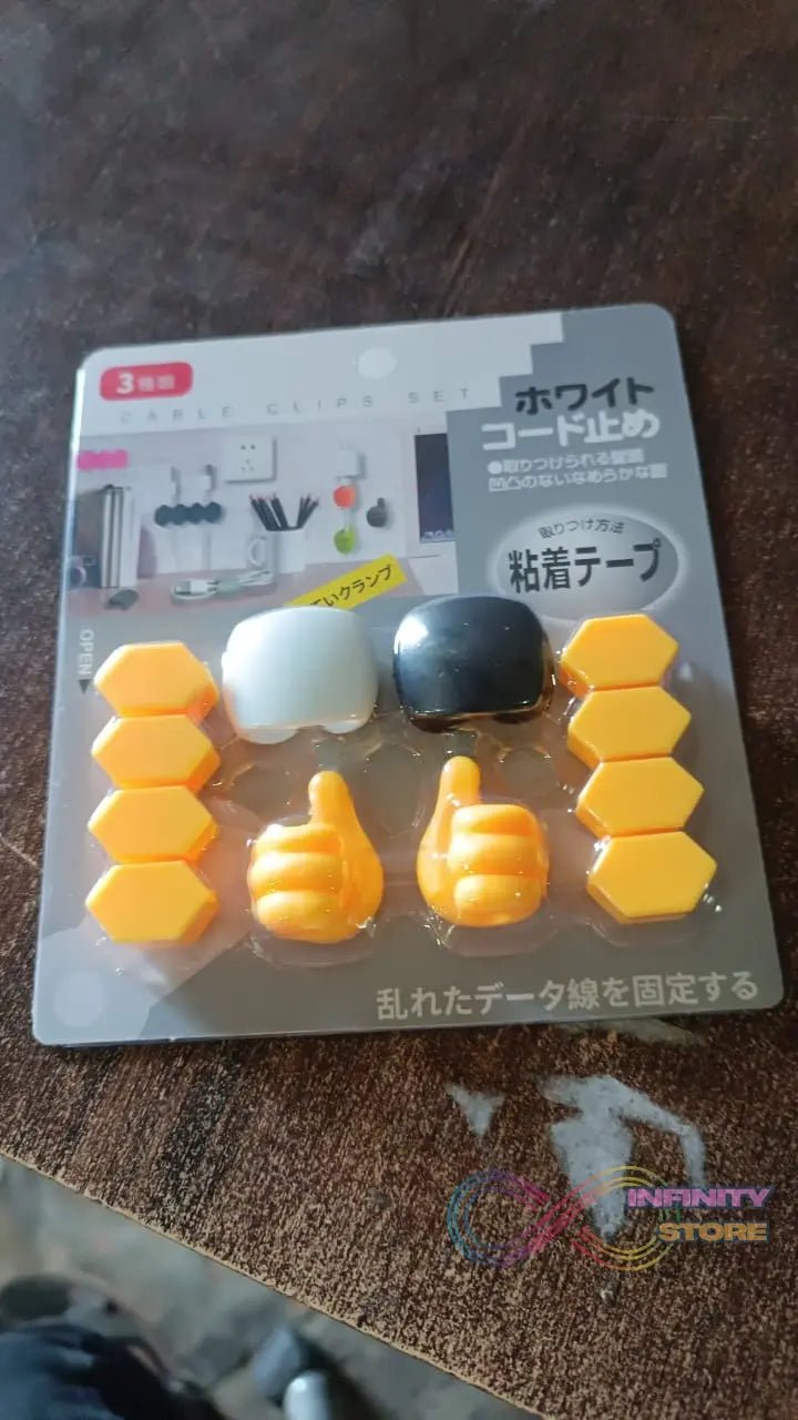 Self Adhesive Hooks for Cable Clips, Desktop Cable Organizer (6 Pcs Set / Mix Design)