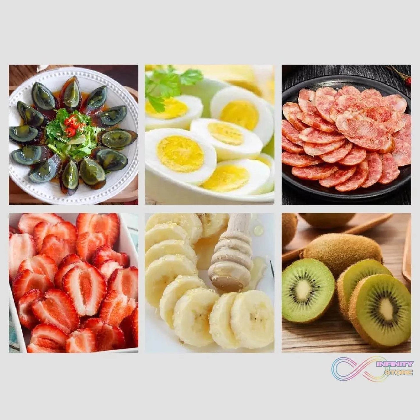 - 3-in-1 Slicer The slicer can easily cut evenly into three various shapes, and rape cutter also suitable for cutting soft foods or fruits, such as strawberry, banana, mushroom, etc.