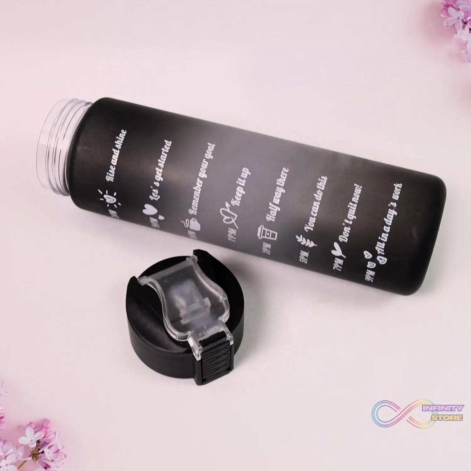 Plastic Black Motivational Water Bottle with Straw (900 ML)