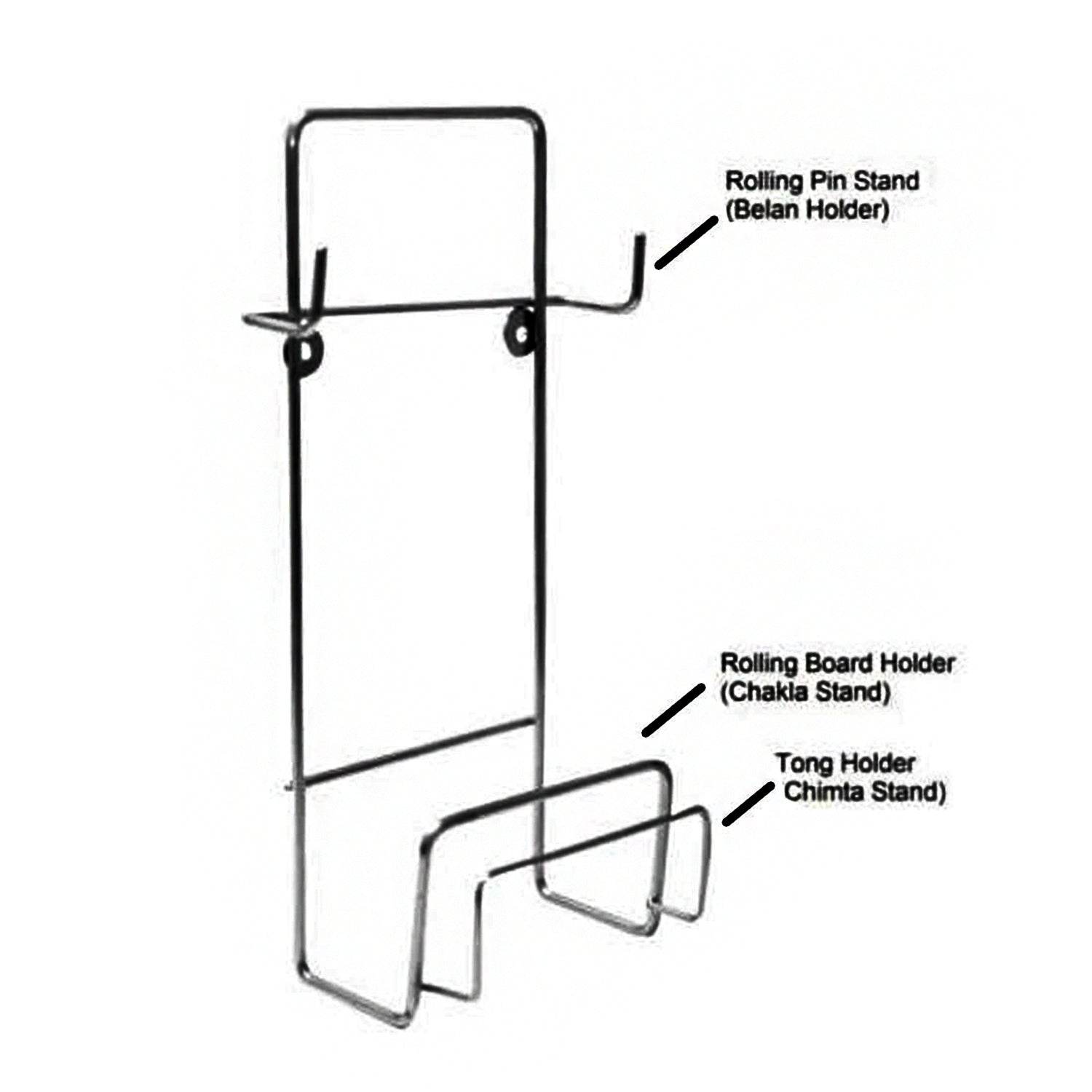 Chakla Belan Chimta Stand Rolling Pin Board Tong Holder Silver Stainless Steel Multi-Purpose Rack for Kitchen (1 Pc )